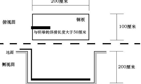 作為地下銅板至地面的接地引線。寬度不小于25毫米,厚度不小于3毫米,長(zhǎng)度若干(視具體情況而定)