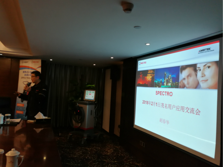 深圳華普通用科技有限公司攜手德國(guó)斯派克(SPECTRO)分析儀器公司于2018年02月01日在茂名國(guó)際大酒店聯(lián)合舉辦了“光譜儀應(yīng)用技術(shù)交流會(huì)”。本次共有9家單位30多人參加了此次交流會(huì)。德國(guó)斯派克市場(chǎng)總監(jiān)及產(chǎn)品經(jīng)理著重介紹了公司的全系列產(chǎn)品及其應(yīng)用,涵蓋了直讀光譜儀 SPECTROLAB、 SPECTROMAXx, 便攜式/移動(dòng)式光譜儀SPECTROTEST、SPECTROPORT,等離子體光譜儀SPECTRO ARCOS、SPECTROBLUE,X熒光光譜儀SPECTRO MIDEX、SPECTRO XEPOS以及手持式X熒光儀SPECTRO xSORT等。